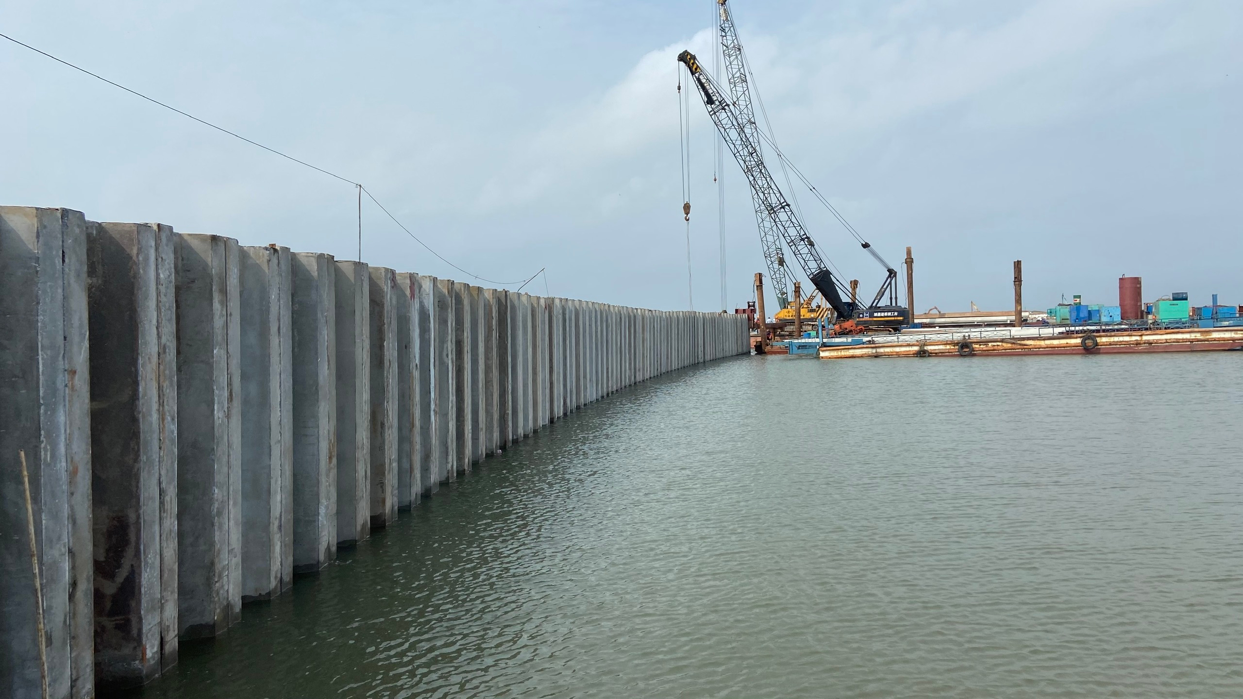 - Thi công dễ dàng và chính xác, không cần mặt bằng rộng, bởi giải toả mặt bằng rất tốn kém, chỉ cần xà lan và cẩu vừa chuyên chở cấu kiện vừa ép cọc là thi công được.